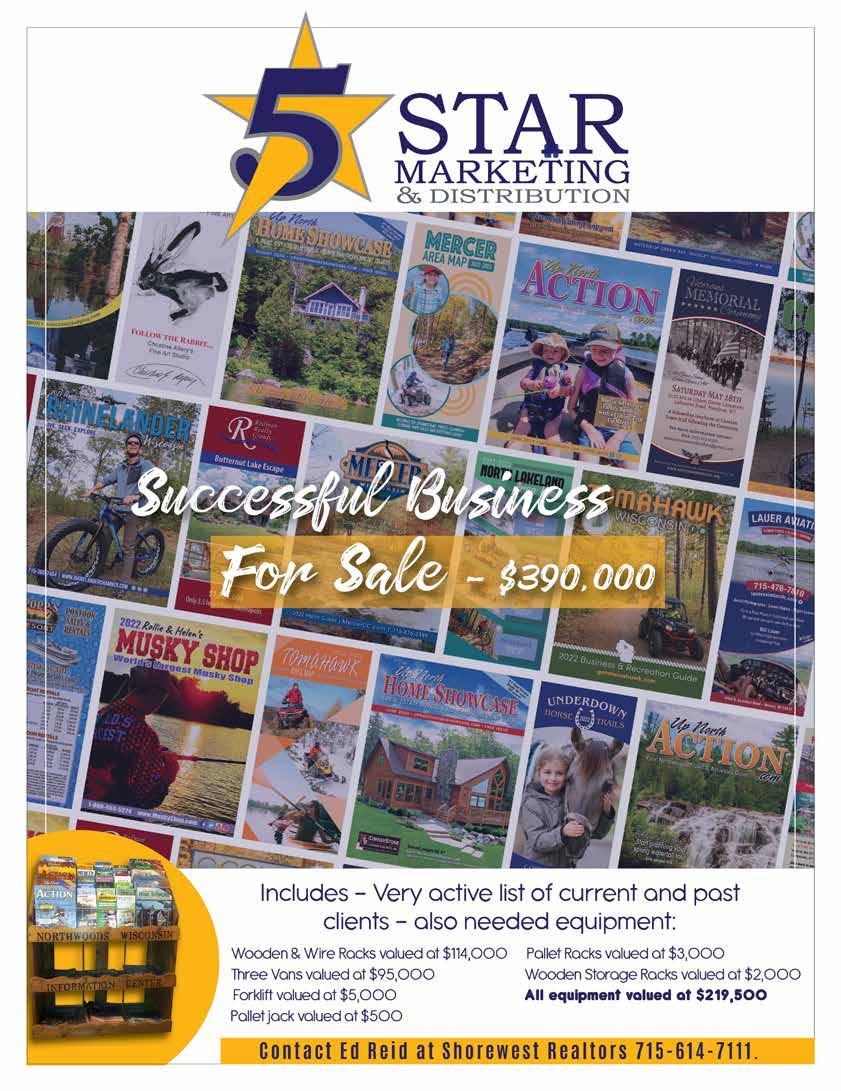 302’ Minocqua Chain frontage, wildlife sanctuary. Paved walkway to a covered porch entry, custom built, beautiful master suite, walls of glass, 2 stone FP, LL fam. Rm, wet bar, elevator between oors. Multiple garages, o ce. Boathouse w/deck, perm pier, lift. $2,300,000 MLS 209022