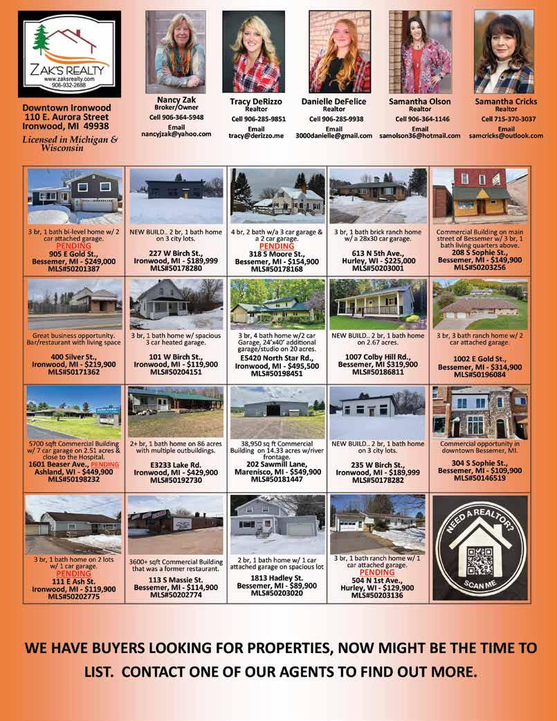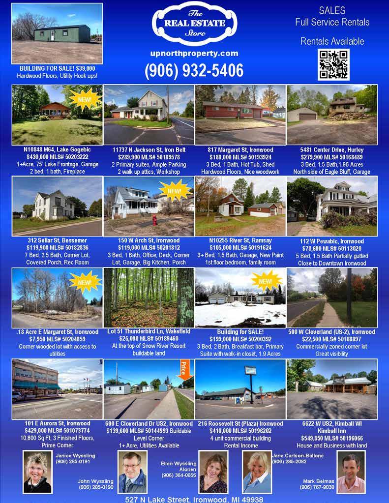 Recently remodeled commercial building, formerly a sports bar, prominently located on well-known Silver St in downtown Hurley near the intersections of Hwys 51 & 77. Property offers excellent visibility & steady yr-round traffic driven by Hurley’s snowmobile, ATV & ski tourism. The approx 1,400 sq ft brick & stone bldg features an inviting exterior & efficient interior layout w/ a 30-ft bar, multiple seating areas & a large gaming section ideal for darts, pool & arcade games. Bar area includes attracti ve sports décor, multiple large TVs, a small kitchen for sandwich-style service & a security system. Major 2023 remodel included updated electrical, plumbing, flooring, bar equipment & security system, creating a true turnkey opportunity. Full basement provides ample storage for supplies & inventory. With its prime location, updated condition & flexible layout, this property is well-suited for continued hospitality use or possible redevelopment into other commercial uses. Great exposure. $139,000 - #215609