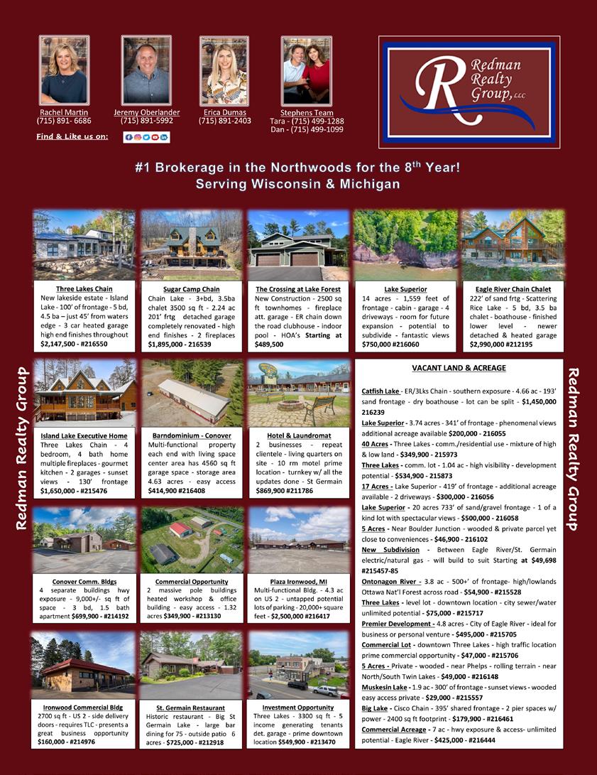 JEREMY OBERLANDER Eagle River Area Specialist 715-891-5992 Jeremy@RedmanRealtyGroup.com