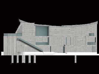 03 瞬間&永恆精神 北向立面圖 0 3 5 7 M 東向立面圖 二層平面圖 0 3 5 7 M 三層平面圖 圖書室 戸外圖書室 陽台 陽台 陽台 展廳一 工作坊 影音劇場 中介空間 倉庫 主展區 特展區 文化路 販售區