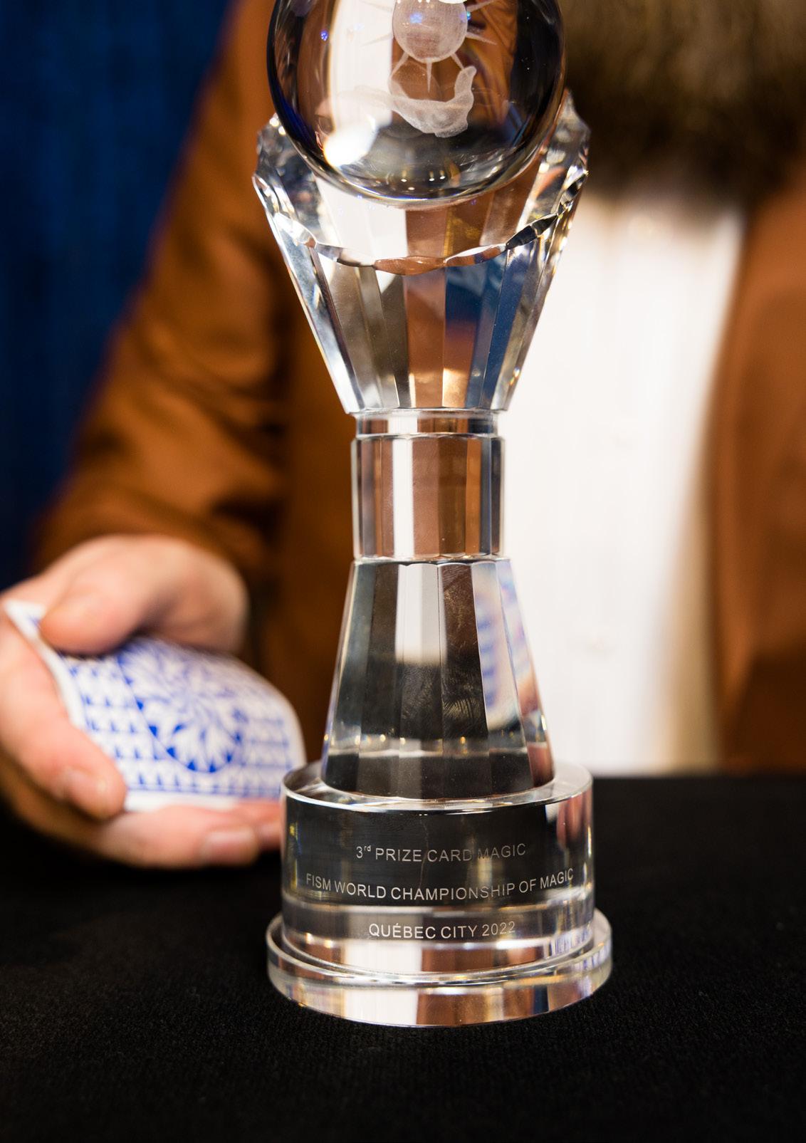 ↓ The third prize trophy Tait won in the Card Magic category of the 2022 World Championship of Magic