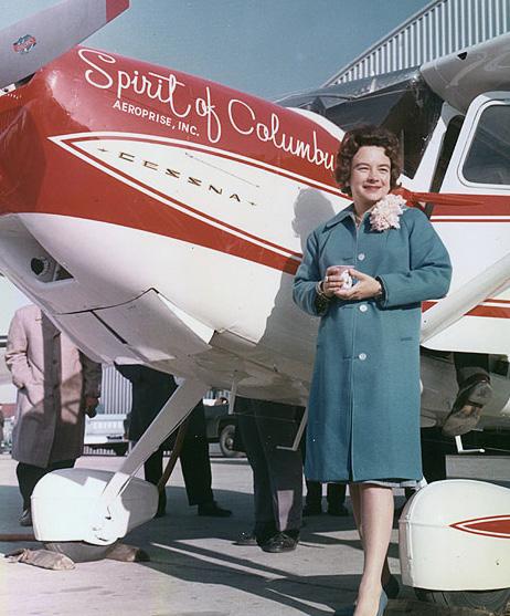 From the time Jerrie Mock took a short plane ride with her father at the age of five, the Newark, Ohio, native knew flying was in her blood. As a college student, she studied aeronautical engineering at Ohio State University – the only woman in her class – and the only chemistry student to receive perfect test scores.