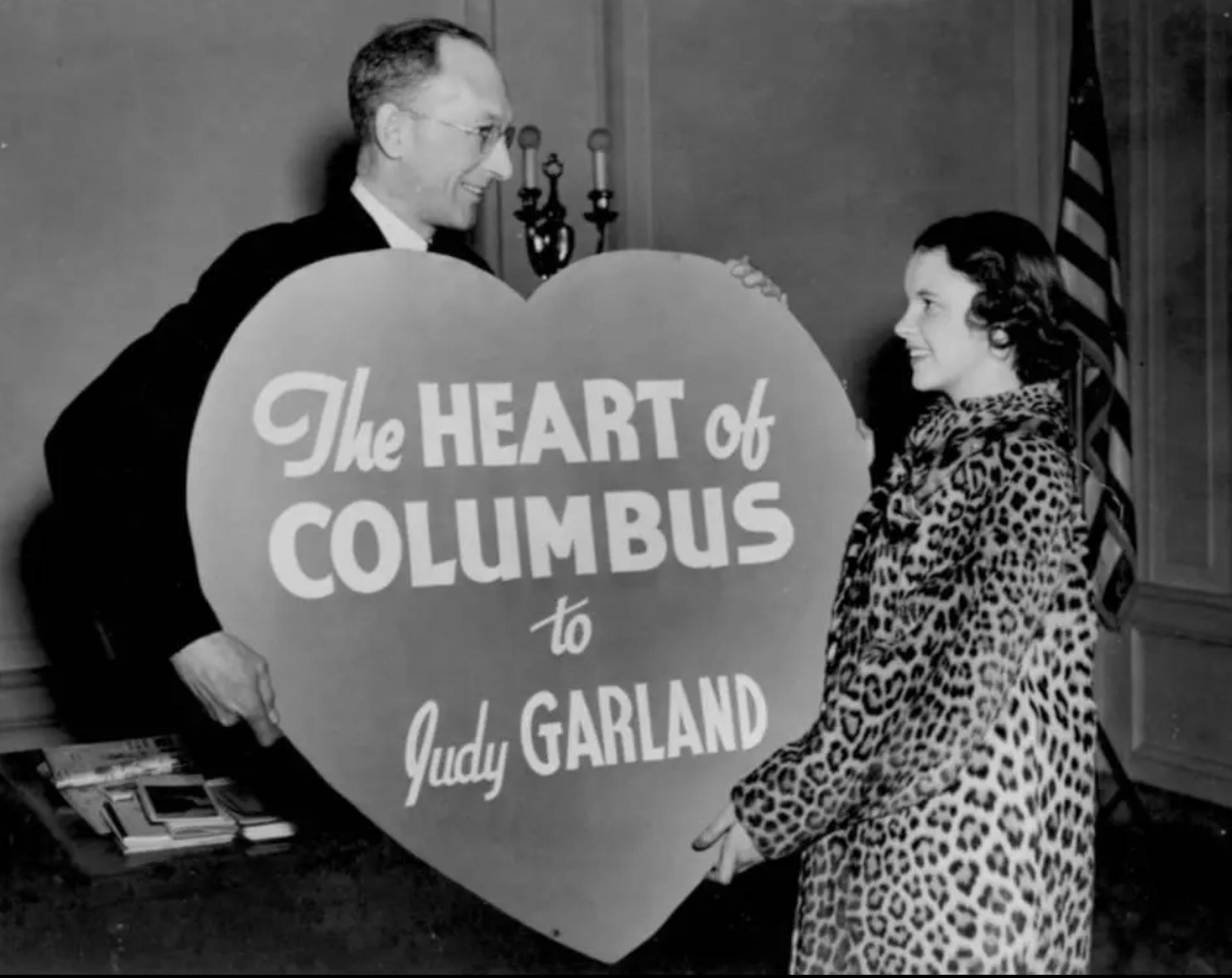 Upon Garland’s arrival in Columbus, Mayor Myron Gessaman presented her with a giant, cutout heart proclaiming her as the “Heart of Columbus.” She, her mother and Roger Edens, an award-winning songwriter and Garland’s mentor, then settled into rooms at the Neil House on South High Street, across from the Ohio Statehouse.