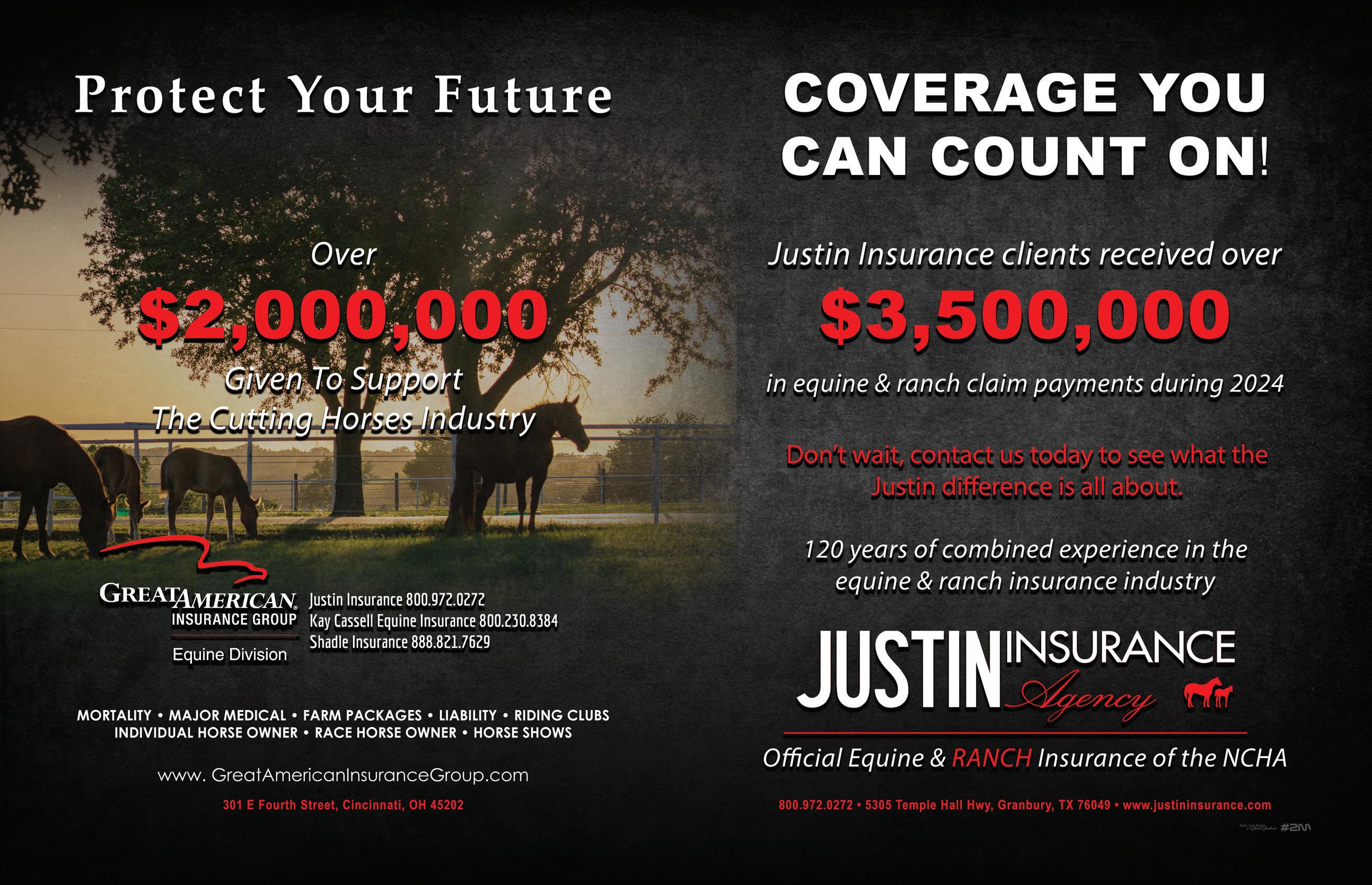 Iwould like to congratulate the NCHA community on the success of the 2024 Metallic Cat World Championship Futurity and the 2024 Broke Spur Ranch World Finals. The Watt Arena and Coliseum witnessed some thrilling runs, culminating in Christian Miller being crowned as the Open World Champion and Kenny Platt as the Open Futurity Champion.