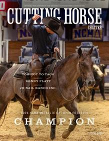 Cutting Horse Chatter (ISSN 1081-0951) is published 4 times a year by the National Cutting Horse Association, 260 Bailey Avenue, Fort Worth, Texas 76107. Telephone (817) 244-6188. Periodicals postage paid at Fort Worth, Texas, and additional mailing offices. The subscription rate of $6.00 is included in the National Cutting Horse Association’s annual membership dues. POSTMASTER: Send address changes to the Cutting Horse Chatter, 260 Bailey Avenue, Fort Worth, Texas 76107-1862. Publications Agreement No. 40791503.
