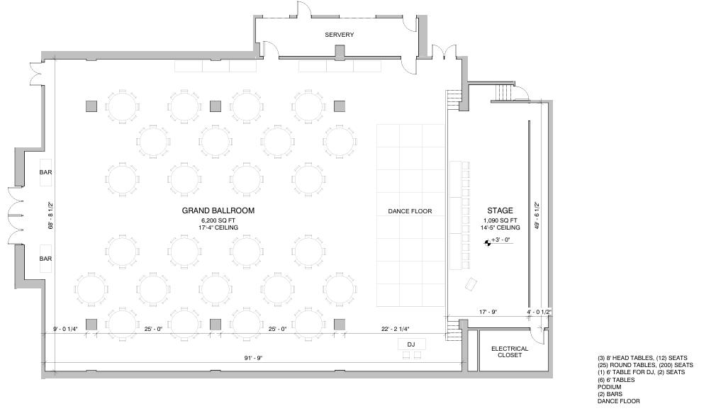 Welcome to our Grand Ballroom, featuring 6,150 sq. ft. of space and soaring 17-foot ceilings.
