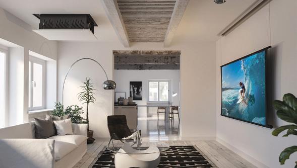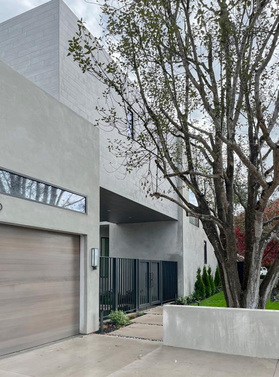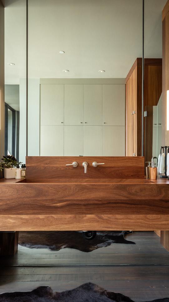 with an aluminum covering on the exterior. “The idea was to have a warm, real wood interior and a durable aluminum exterior,” says Girodo Angelin. “We also supplied custom Italian flush-to-the-wall wood interior doors with hidden frames. Listening to what the client wanted helped us achieve what they hoped for.”