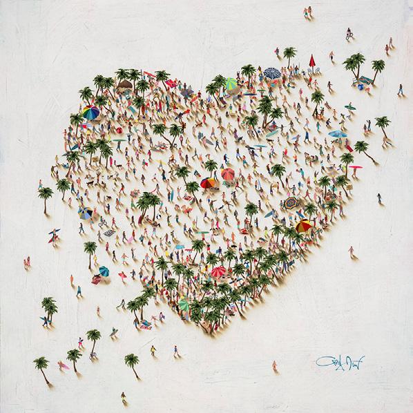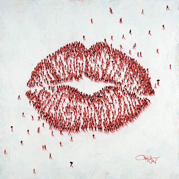 his “Populous” works, which consist of a multitude of individual people walking around, doing what people do, the entire group forming a larger image. In most cases, the larger image is a portrait of a famous person or shows the people interacting with objects in their environment.