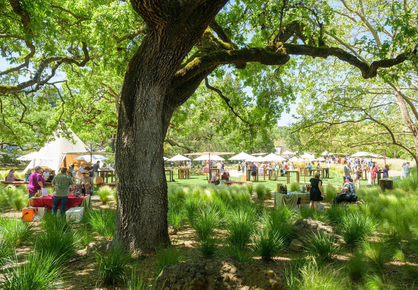 The Taste of Yountville has been a fixture in Yountville for years, evolving from its early days as a casual street party and large-scale grand tasting to this year’s newly imagined garden party format. Returning after a four-year hiatus, the Taste of Yountville is a passport-style event, taking guests on an exploration of 14 Yountville wineries located within a one-mile radius of town: Bell Wine Cellars, Chandon, Cornerstone Cellars, Elyse Winery, Goosecross Cellars, Handwritten Wines, Hill Family Estate, Hoopes Vineyard, Hope & Grace Wines, JCB, Jessup Cellars, Priest Ranch Winery, Silver Trident Winery, and Stewart Cellars. The wineries offered a selection of three wines—two current releases and one library vintage. At each wine station, guests received a passport-type stamp documenting a voyage of wine discovery. General admission ticketholders enjoyed a taste from each winery; a limited number of VIP guests received an additional pour, early entry, and access to a private cabana. Winery principals were on hand during VIP hour, allowing for intimate conversations before doors opened for the main event.