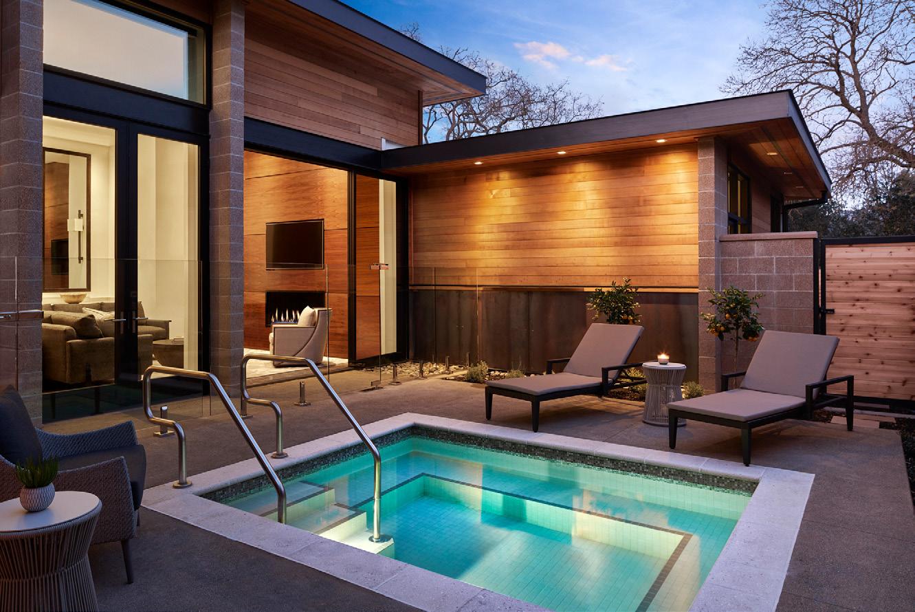 Beyond the individual rooms, Bardessono has implemented landscaping improvements, completed a fitness center expansion in a new location, and expanded its luxury accommodations to include the Maple Grove Villas.