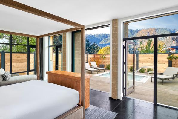 Outside of their rooms, guests of Bardessono can immerse themselves in an array of experiences that cater to relaxation and indulgence. The pool deck offers panoramic views that invite contemplation, and Lucy Restaurant & Bar serves up culinary delights with ingredients sourced straight from Bardessono’s garden. “Lucy Restaurant & Bar is led by Executive Chef Rick Edge, known for his exceptional culinary skills and deep understanding of seasonal California cuisine,” says Negueloua.