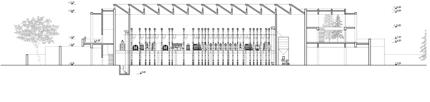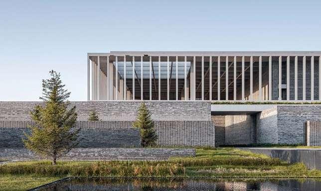Structural drawing inspection and facade study : The facade adopts two design languages: brick wall and grille. The brick wall system is mainly used for exhibition halls and water drop areas. The grille is the main design language for buildings in other areas. Create a simple sense of order and the tradition and warm emotions brought by wooden materials