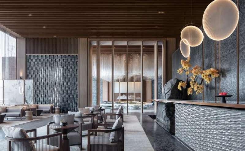 As one of the most important space of a hotel The lobby is located on the east side of the site entrance , In a relatively independent area