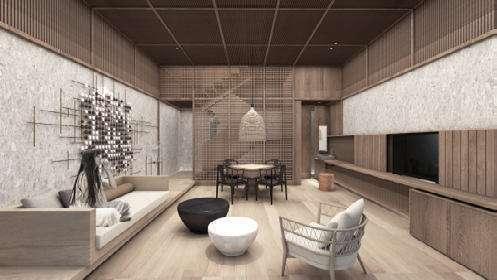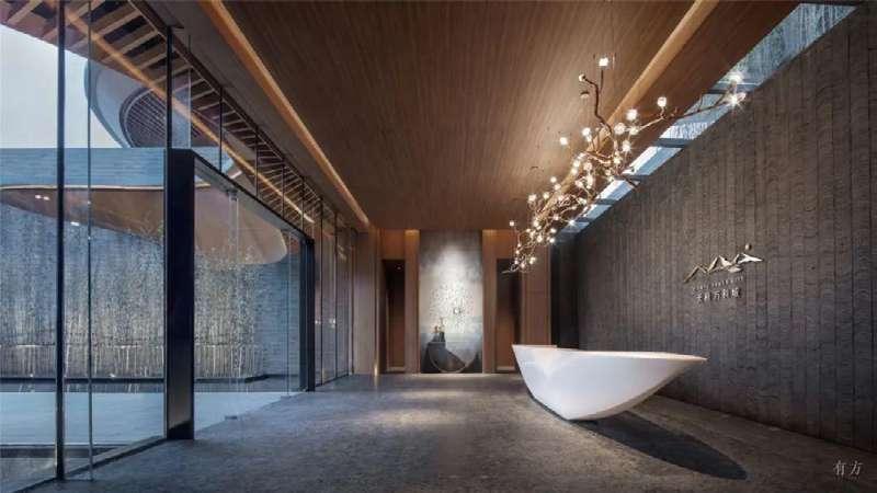 The reception area is based on the concept of Chengdu Bamboo Forest. The reception area breaks the boundary between indoor and outdoor in terms of design form and materials, and realizes the unity and integration with nature
