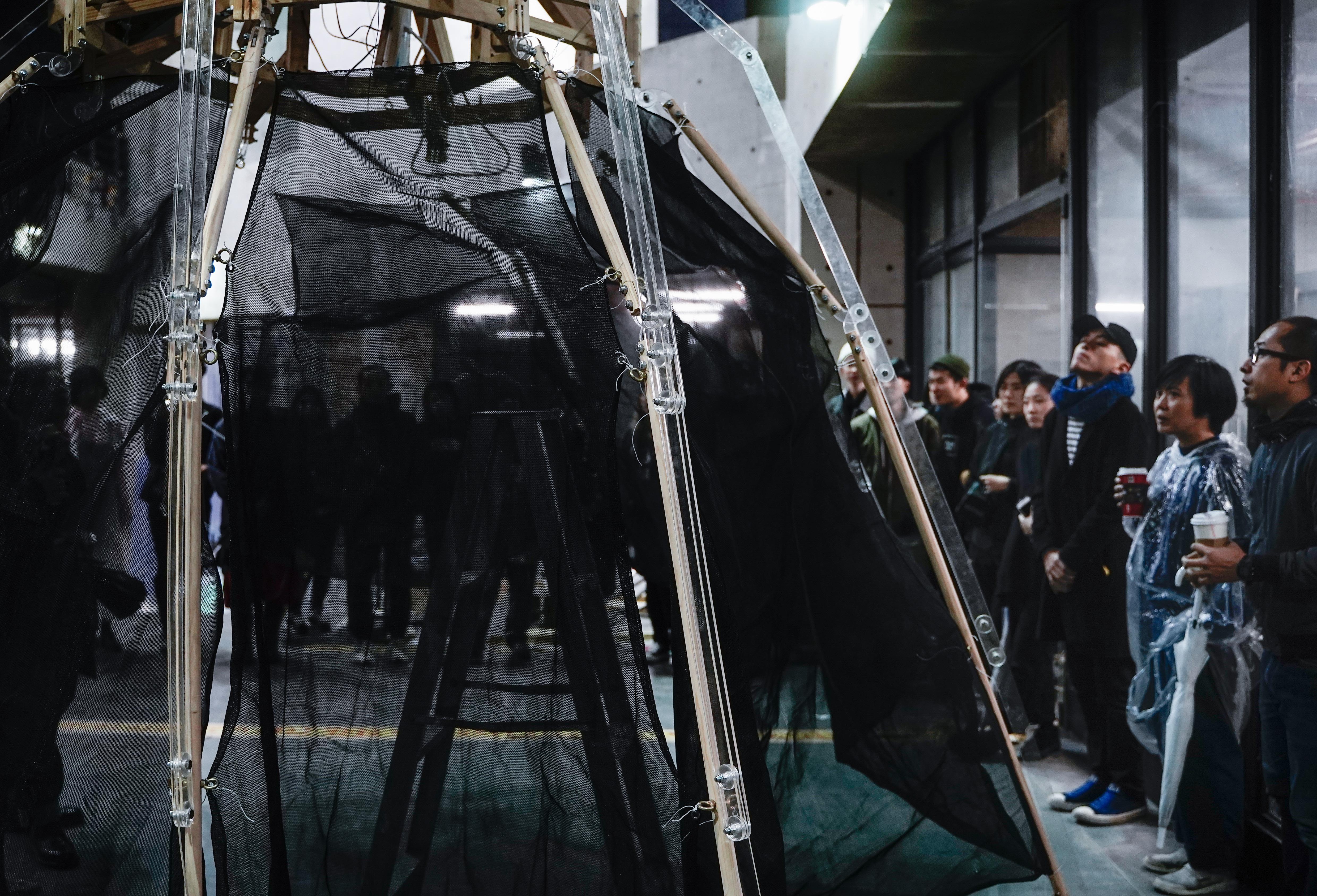 This installation translates and expresses the existence and influence of sound at the same time, and feels the subtle relationship and changes between people, sound and space. Divided into internal and external spaces, the interior will shrink the entire space due to the sound changes of the external surrounding environment, and the exterior will be vice versa.
