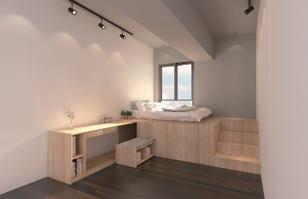 The master bedroom first raises the floor to the window height, increasing Adding the bottom storage function, then placing the user's behavior, adding usage habits and people On the body scale, it forms a retractable furniture.Increase the functionality of the space and the life field Domain size.