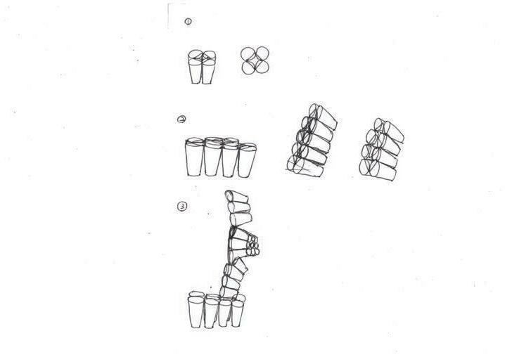 Due to the material properties of the cup, the slope slowly changes to an arc shape, the are gradually becomes arched, and the material gradually evolves from a single shaoe to a variety of different appearances.