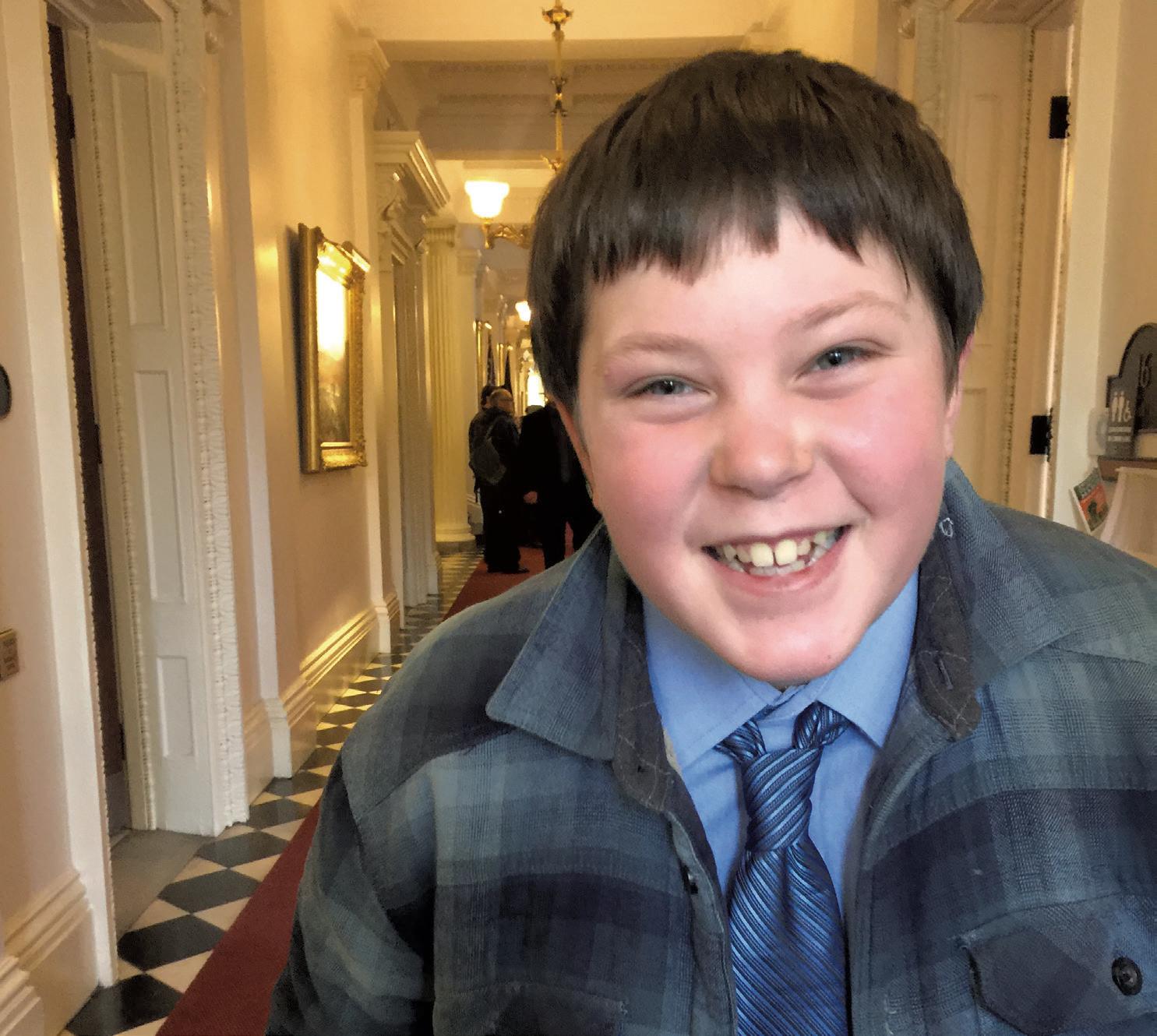 Good Citizen-aged Graham, 11, at the Vermont Statehouse in 2017