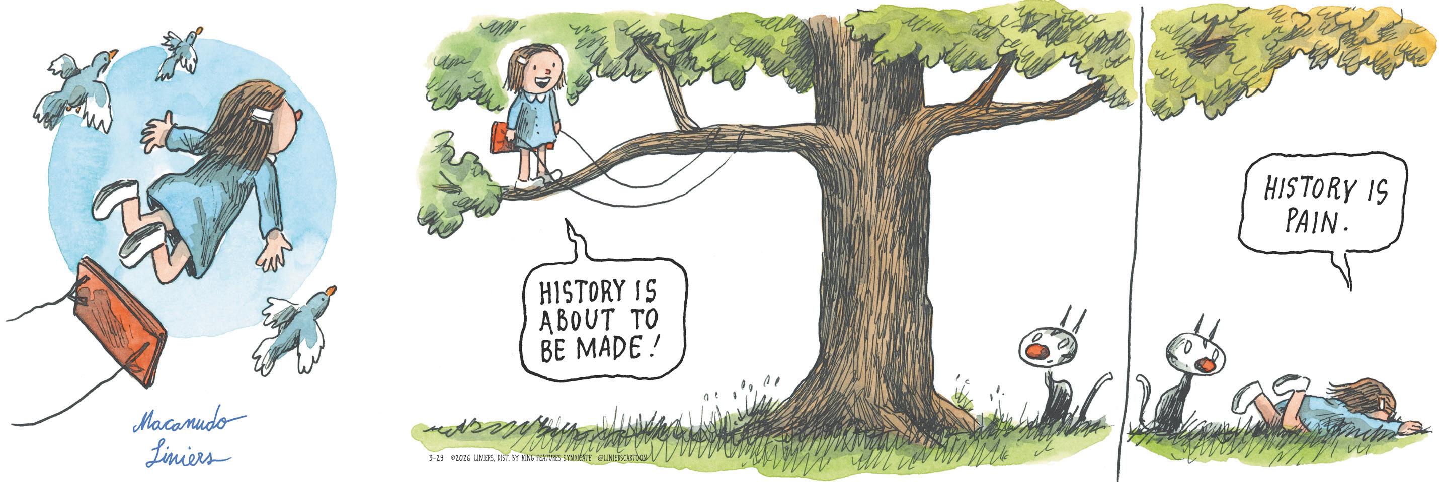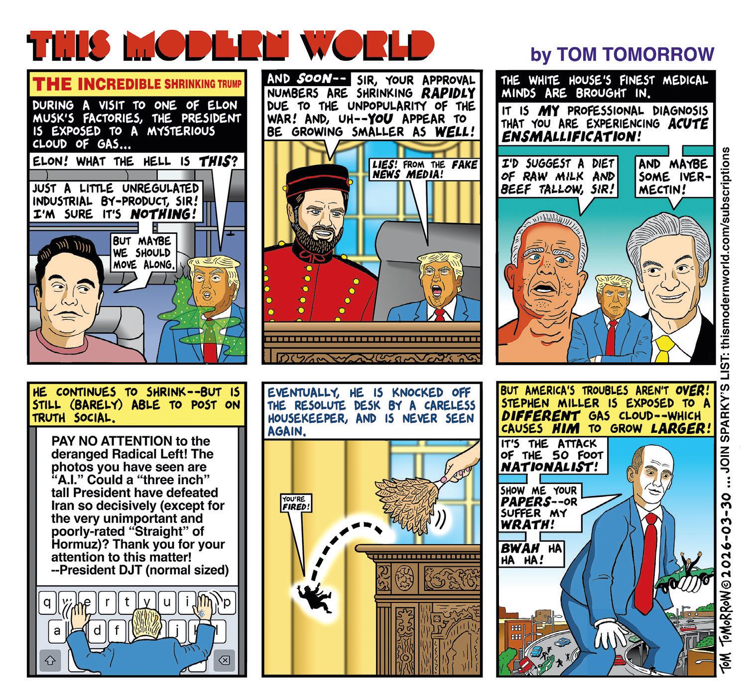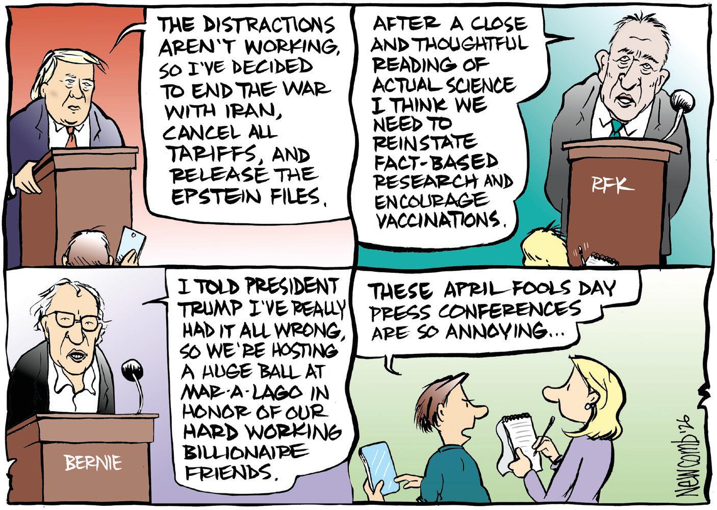 A wise friend once said, “The only thing more depressing than a stereotype is when somebody lives up to it.” I can’t imagine a better illustration for this than Tim Newcomb’s March 11 panel. Thanks so much, Mr. Newcomb, for your efforts to sledgehammer the wedge deeper into the stump of our democracy, because what America really needs right now is someone to shore up our dueling political stereotypes of ignorance and arrogance.