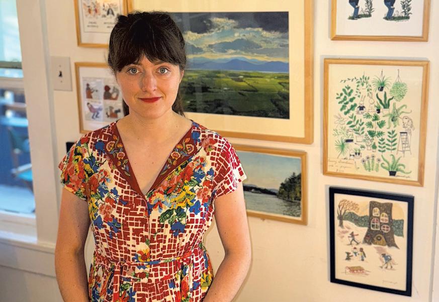 More recently, Preston searched for public artworks created by eight Burlington High School students. e kids made two large, colorful textiles of data visualizations that represent Lake Champlain and attached them to the Moran FRAME on the city’s waterfront on