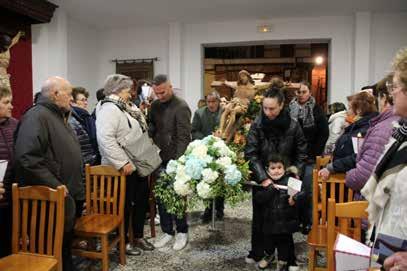 AÑO 2023 Participación de 45 niños y procesionando una peaña y la peaña de la parroquia con un Niño Jesús.