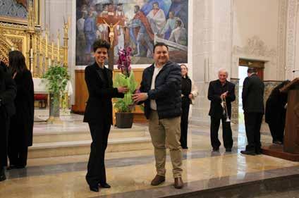 Estuvieron presentes componentes de la Federación de Cofradías con su presidente Sebastián Torrés, así como una amplia representación municipal, con nuestra alcaldesa al frente María Dolores Miralles. Ambos al final del concierto hicieron entrega de un detalle floral a Sofía y a Augusto.