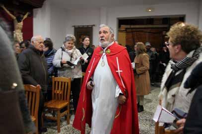 Nos fuimos a cenar al Mas La Cuadra y por la mañana, frey Juanjo y yo nos desplazamos a Valencia, para recoger a su madre, que había estado unos días con la madrina de lady Amparo, almorzamos allí y al volver comimos en el restaurante La Gaspara de la carretera de Alcora. Por la tarde nos preparamos y nos desplazamos a Castellón, los tres templarios, para encontrarnos con las ladys Amparo, Gloria, Rosa, Montse, Débora y María Ángeles que no pudo participar en el evento y así tomar parte como representantes de nuestra asociación Damas y Caballeros Templarios del Santo Grial del Alcalatén, en el famoso Pregón; llegamos a la calle Sant Roc, donde se inicia el recorrido, saludamos a muchos amigos y conocidos, algunos hacía un año que no nos veíamos y justamente allí en el mismo sitio; nos hicimos unas fotos con los personajes que iban vestidos de obispos, como el señor José Pascual Martí García, ex presidente de la Diputación de Castellón, o el señor Juan José Miralles, ex coronel de la Guardia Civil de Castellón, al cual hace muchos años, junto a su esposa, la señora Nuria, que nos conocemos.