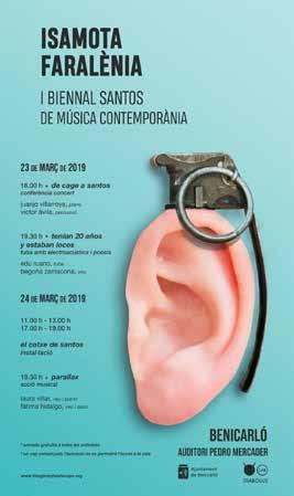 La Regidoria de Cultura, amb la col·laboració de l’associació cultural Diabolus, ha presentat la primera edició d’Isamota Faralènia, la primera Biennal Santos de Música Contemporània que pretén homenatjar i reivindicar la figura del genial compositor vinarossenc. Els dies 23 i 24 de març, s’han programat un seguit d’activitats a l’Auditori Pedro Mercader que abastaran disciplines i llenguatges artístics molt diferents i que inclouran la possibilitat d’entrar al cotxe de Carles Santos (on ell componia i escoltava música), que estarà ubicat a l’escenari de l’Auditori. A dins, el públic podrà escoltar l’última peça que va gravar en estudi, The proposal, que va ser un treball conjunt amb l’artista Amalia Ulman per a la Berlin Biennale d’art contemporani de 2016.