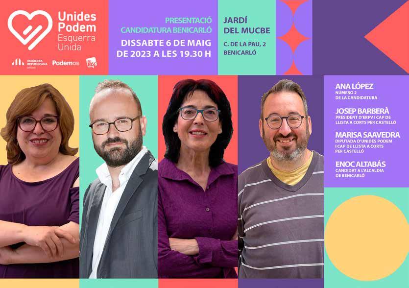 Nota de Redacción 7dies : Vox Benicarló presentó su lista de candidatos el miércoles 26 de abril a las 20:00, al cierre de edición de esta revista. Por horarios de impresión, se publicará la correspondiente información la próxima semana.