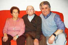 Manuel Beltrán, celebrant el seu 88 88 aniversari, en companyia de Manuela Ortells i Juanma Beltrán.