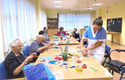 Pero la intervención en el Centro no se limita a los talleres, sino que es continua, tratando de crear una rutina predecible por el residente de manera que existe un sentido de control sobre el entorno, ya que la desorientación, el no saber qué va a ocurrir, produce un gran sufrimiento en la persona con demencia, de ahí la importancia de la creación de rutinas.
