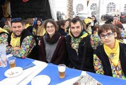 La típica estampa multicolor, aportada por las variopintas blusas, chalecos, gorras y pañuelos de las 33 comparsas, volvió a repetirse como ya se hiciera en un acto gastronómico previo similar el pasado otoño. Las paellas, preparadas para más de 4.000 personas, estuvieron organizadas por la Comissió Organitzadora del Carnaval (COC) y fueron patrocinadas por Hipermercados Simply y Dicocar.