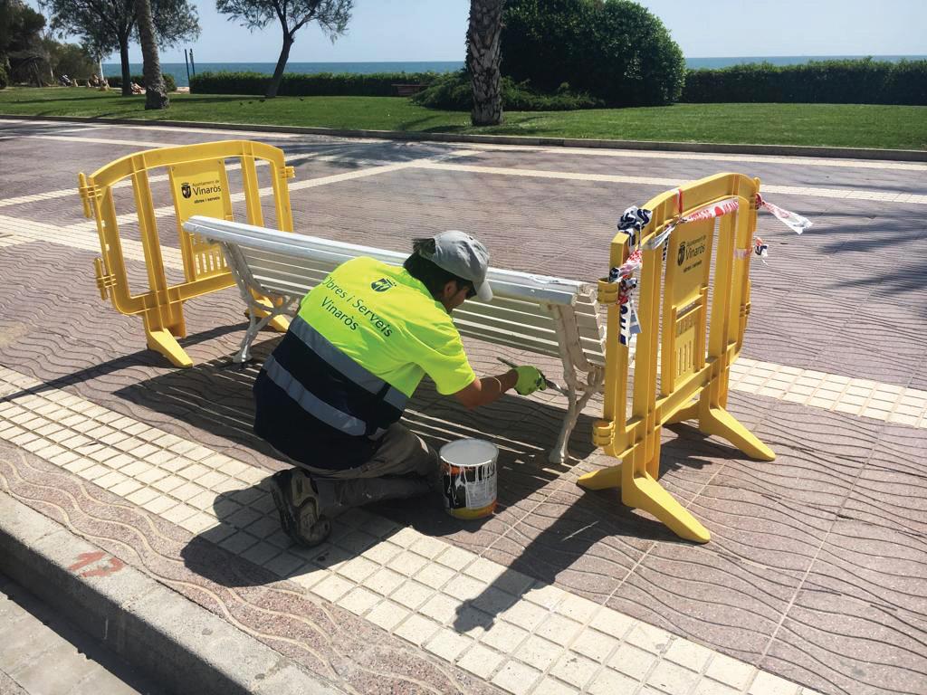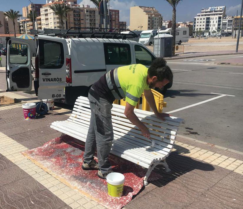 La Regidoria d'Obres i Serveis, a través de la Brigada, està executant el manteniment rutinari del mobiliari urbà amb el pintat i reparació dels bancs, així com la renovació del terra del passeig marítim. L'objectiu és que totes les infraestructures estiguen en òptimes condicions de cara a l'arribada de la temporada alta. D'altra banda, els operaris també estan fent el repintat de les baranes del passeig i revisant els accessos a les platges.