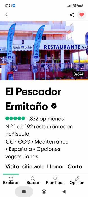 Hace unos días entraba en contacto conmigo nuestro amigo, el vinarocense Alfredo Barberá Barbé dándome una agradable noticia. Me comunicaba que en fecha del 17/08/2022, la afamada empresa TripAdvidor les había colocado como el restaurante nº 1 entre 192 restaurantes de la vecina localidad de Peñíscola.