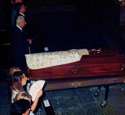 Voy al comentario de la foto con el féretro de mossèn Vicent en el día de su entierro el 27/08/1997 y que dice así: “El féretro, cubierto con la casulla y el libro del Oficio Divino, al pié del altar, mirando a los fieles y entre sus familiares”.