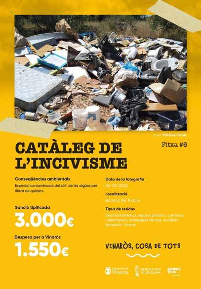 L'objectiu de conscienciar a la ciutadania sobre la gestió correcta de les deixalles per evitar abocaments descontrolats de residus en el terme municipal La Regidoria de Transició Ecològica ha decidit reforçar la campanya “Catàleg de l’Incivisme” per a fomentar entre la ciutadania el llançament correcte de les escombraries. Cal destacar que cada any es detecten abocaments il·legals dintre del terme municipal, sobretot en els marges dels camins rurals, barrancs o fins i tot en terrenys privats i l'objectiu de la campanya es evitar aquest tipus de conductes incíviques.