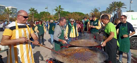 posició a mitjan matí per a començar a preparar les paelles. Acabada l'elaboració de les paelles, al migdia, unes comparses abans, unes altres després, es van repartir els plats, carregats d'arròs, entre tots els comensals que ja abans havien degustat un aperitiu. El passeig Fora Forat era com un riu multicolor de camisoles, mocadors, jupetins i altres abillaments de les diferents comparses.