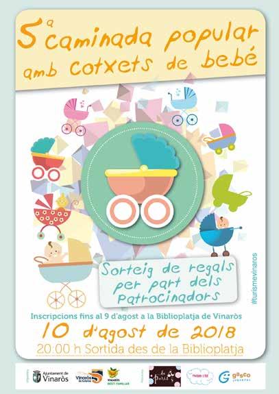 El proper divendres 10 d'agost es farà la 5a edició de la Caminada de Cotxets de Bebé, una activitat que cada any aconsegueix la participació de més famílies, que volen gaudir d'una passejada agradable amb la costa vinarossenca com a escenari de fons. La sortida es farà a les 20:00h des de la Biblioplatja amb arribada a la carpa de l'avinguda de l'Atlàntic.