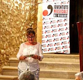 La presidenta de “Joventus Musicals” de Vinaròs Mari Carmen Guimerá Talavera presentaba a la concertista natural de la vecina localidad de Alcanar, la cual ya había actuado en nuestra ciudad, concretamente en nuestro auditorio.