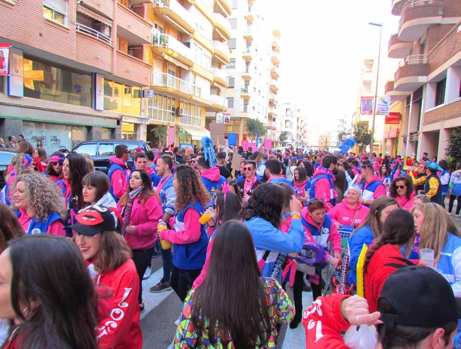 Durant la vesprada del dissabte 23 de febrer, comparsers i visitants van passejar per Vinaròs acompanyant les Reines de les Comparses al recinte de la Gala.