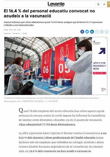 Així mateix ja s’ha donat per tancat el primer trimestre del 2021. Hem entrat ja en el mes d'abril, i d’entrada tot apunta que la recepció de vacunes no serà la que es va dir en el seu moment, pel que la immunització general encara tardarà. Esperem que no massa, ja que fins i tot es parla d’una quarta onada de la pandèmia. Ara en aquests dies, la millor vacuna que tenim és complir el màxim les normatives sanitàries, i que no ens falte la Mona de Pasqua per no perdre el dolç costum.