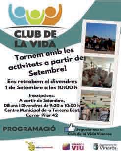 El Club de la Vida vuelve con sus actividades a partir de septiembre. Las inscripciones, para las personas que deseen formar parte de este club, podrán hacerse a partir del día 1 en el Centro Municipal de la Tercera Edad (de 9:30 a 10:00 horas).
