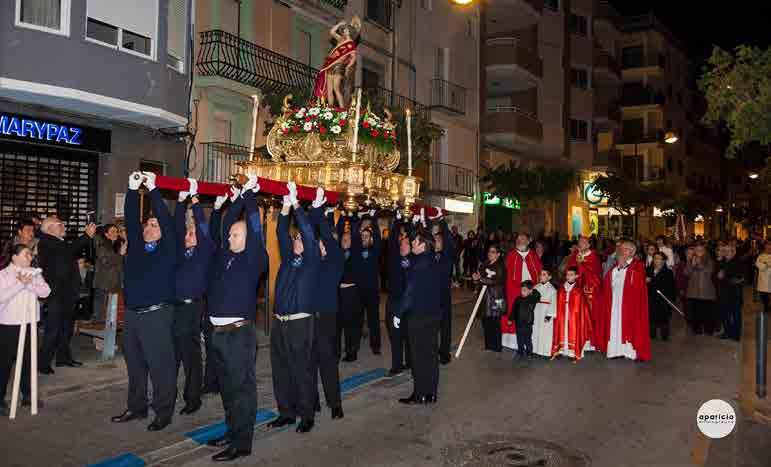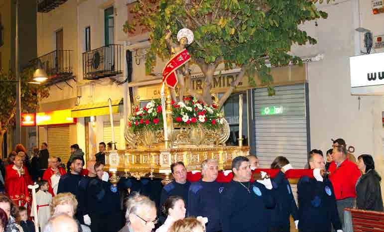 Finalizada la misa se formó la procesión cuyo orden fue el siguiente: Cruz alzada, bandera de San Sebastián, imagen de San Sebastián portada por los costaleros de la “Cofradía del Paso de San Pedro”, fieles, la reliquia portada por mossèn Emilio y acompañado por mossèn Florencio y Cristóbal, concejales de nuestro ayuntamiento, “Camareras de la Virgen de la Misericordia y de Sant Sebastià”, “Cofradía de Ntra. Sra. de la Misericordia”, fieles y cerraba la procesión la banda de música, la Societat Musical “La Alianza”.