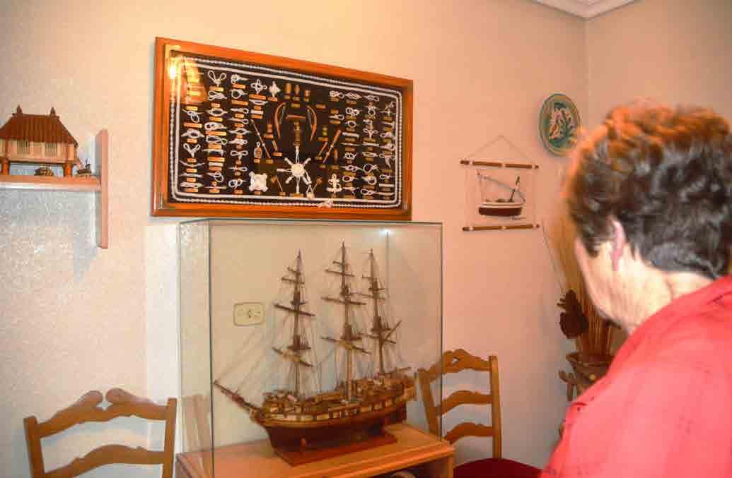 Manolita es una persona encantadora. Hace mucho tiempo que le teníamos que realizar esta entrevista, y desplazarnos hasta su casa, para poder ver, observar y admirar una colección de maquetas navales, las cuales, realizó su marido D. Juán Guzman Comes, marinero el en su etapa profesional.