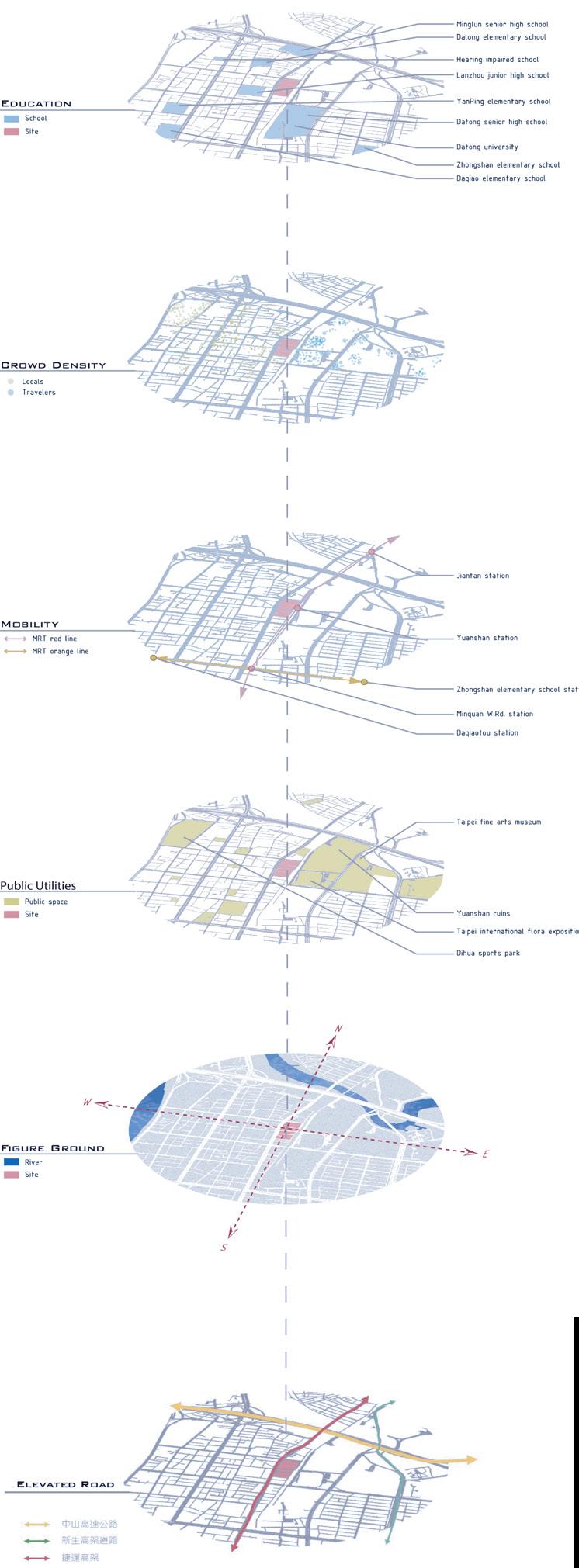 I selected Taipei’s Yuanshan Metro Station area in 2060 as the space for my project. This area of Taipei is close to an airport that is due to close and become part of the City Central Garden. I selected this area because the axis of the channel of airplanes changes the skyline in this area, which is also a symbol of a domesticated city.