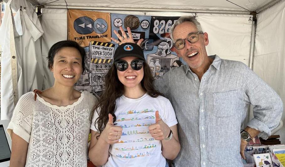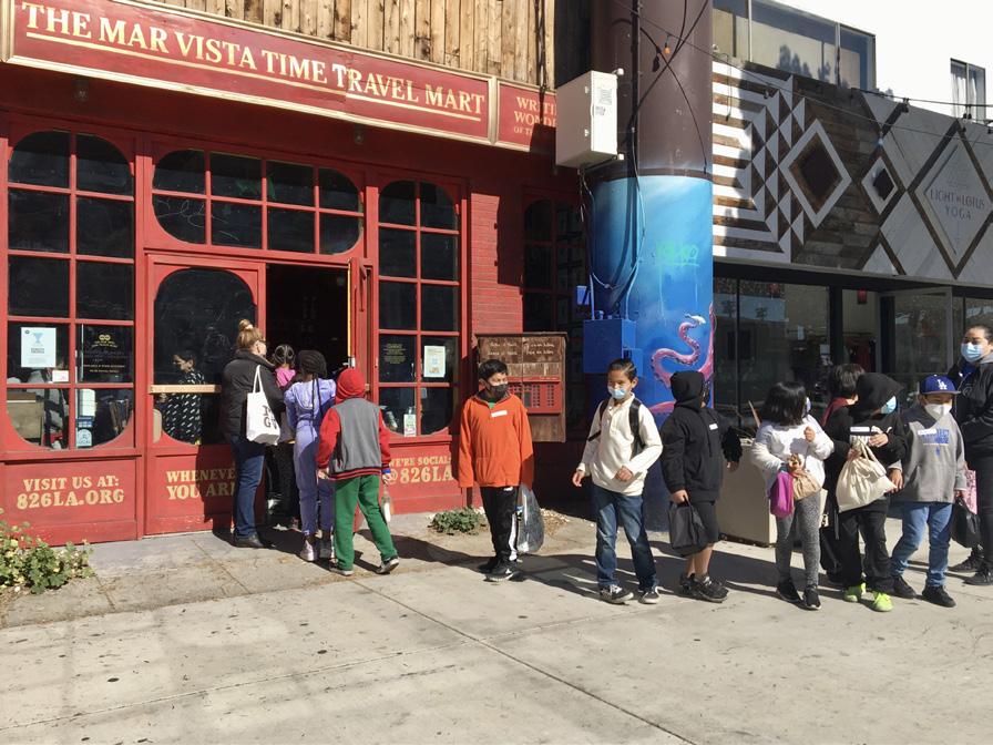 On a bright, cold Thursday morning nearly two years after 826LA closed our centers due to COVID-19, fourth graders from Grand View Boulevard Elementary lined up outside the Time Travel Mart in Mar Vista. A local skateboarder performed tricks, delighted by the impromptu audience. Students made their way through the store—past books, time travel sundries, and one rusty robot—to the writing lab.