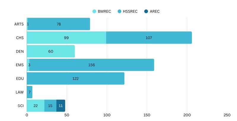 Upholding research integrity and ethical standards remains a core mandate of RDPS. In 2024, UWC’s three Research Ethics Committees the Animal Research Ethics Committee (AREC), Biomedical Research Ethics Committee (BMREC), and Human and Social Sciences Research Ethics Committee (HSSREC) collectively reviewed 681 research projects, ensuring compliance with national and international frameworks.