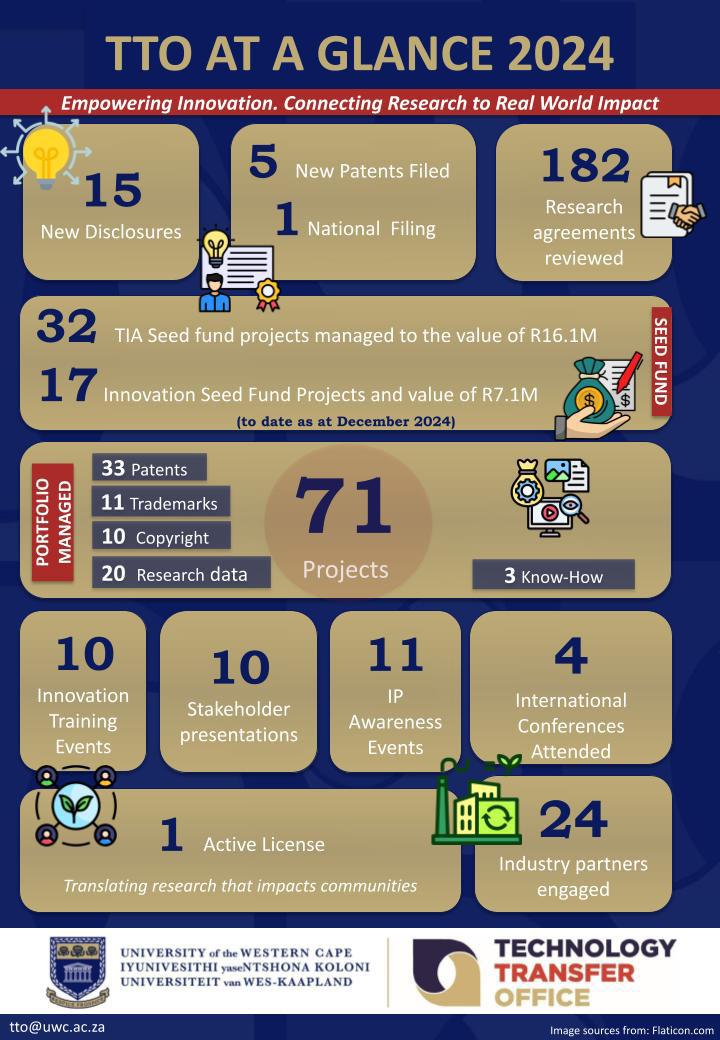 At UWC, innovation begins with people. The Technology Transfer Office (TTO) cultivates a culture of curiosity and creativity by empowering researchers and students to transform their ideas into socially impactful innovations. Through awareness campaigns, training workshops, and targeted mentorship, the TTO continues to build the capacity of UWC’s academic community to identify and develop technologies aligned with the Sustainable Development Goals (SDGs).