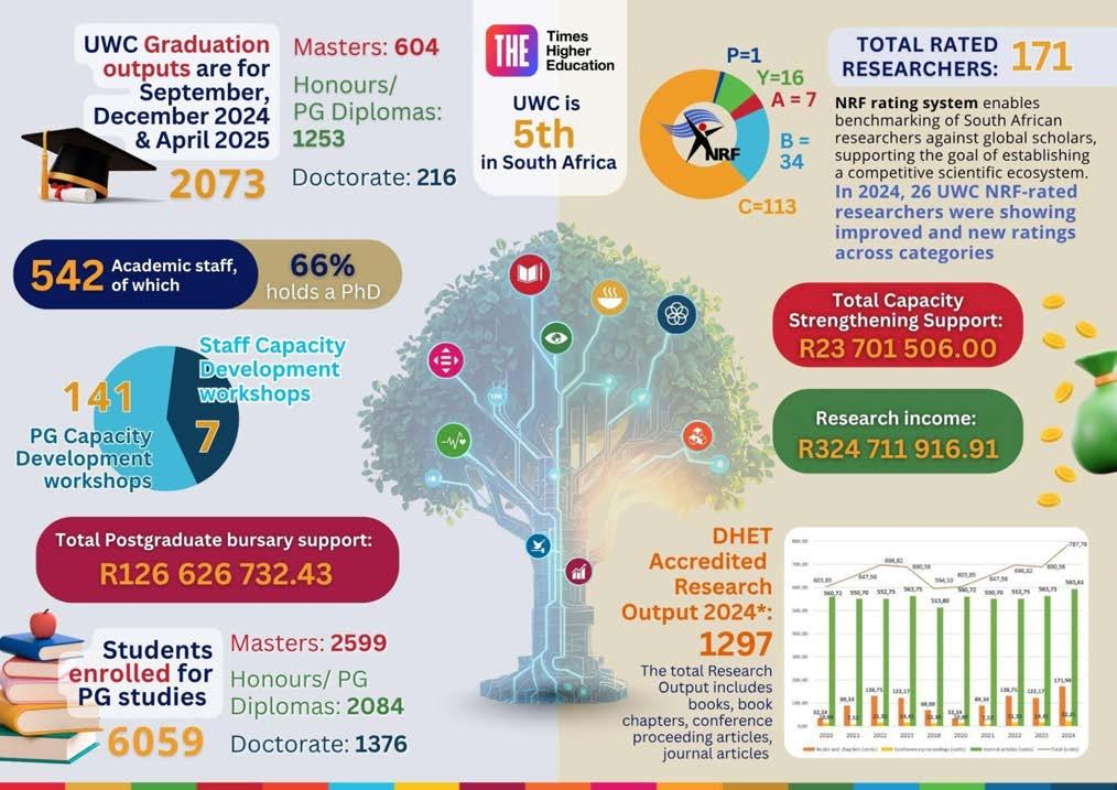 In the pages that follow, you'll discover the concrete realities behind these aspirations the data, stories, and evidence of how UWC's research ecosystem is maturing and delivering impact. You'll encounter: