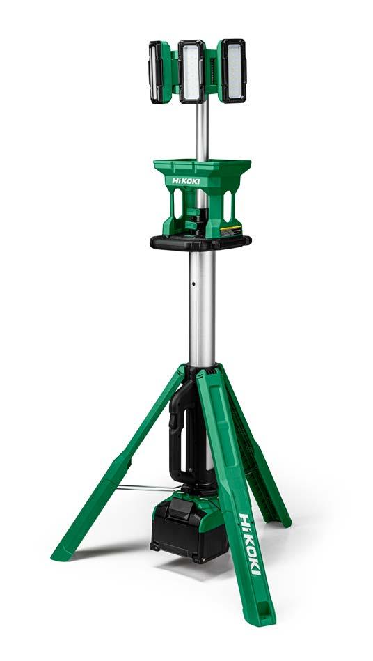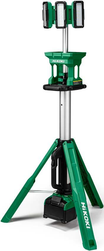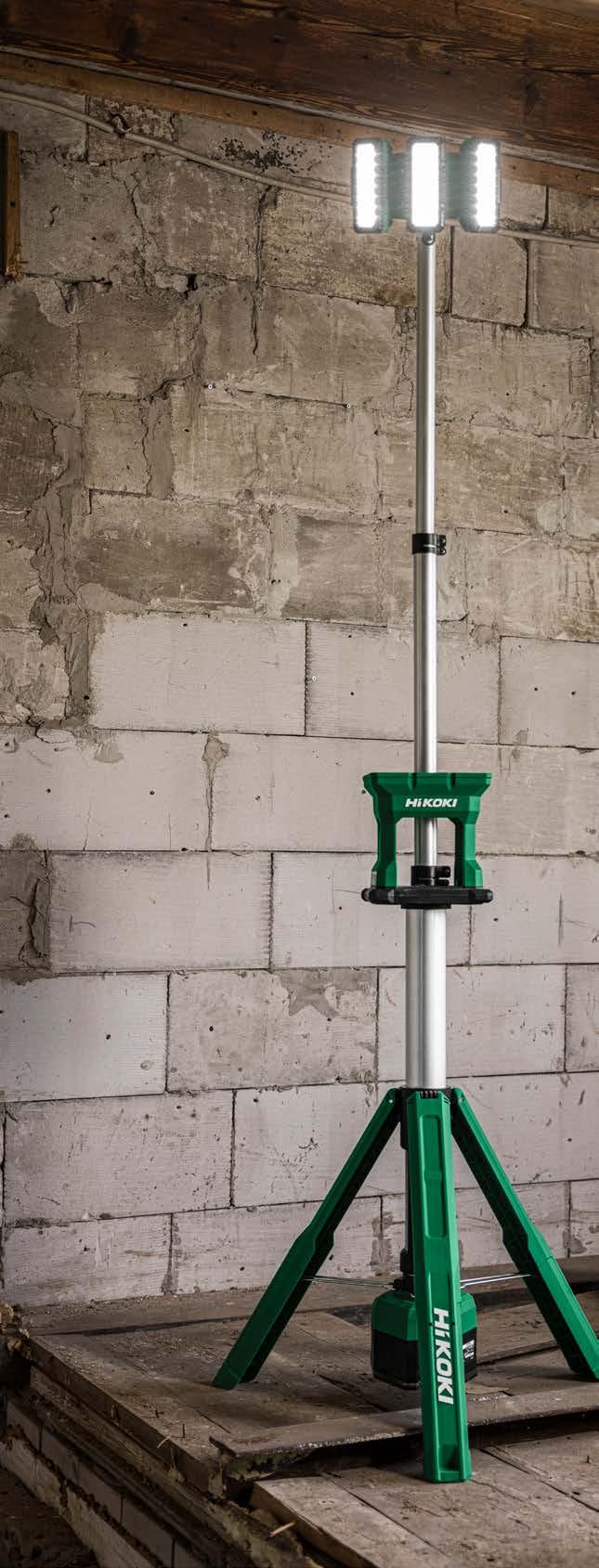 Justerbar höjd från 123 till 215 cm för belysning av stora arbetsytor | Tre vridbara LED-lampor för individuell ljusljustering | Lång drifttid upp till 17 timmar (8,0 Ah batteri) för färre batteribyten | IP55 för skydd mot vatten och damm | Hybridfunktion, batteri eller nätdrift för flexibilitet och obegränsad drifttid.